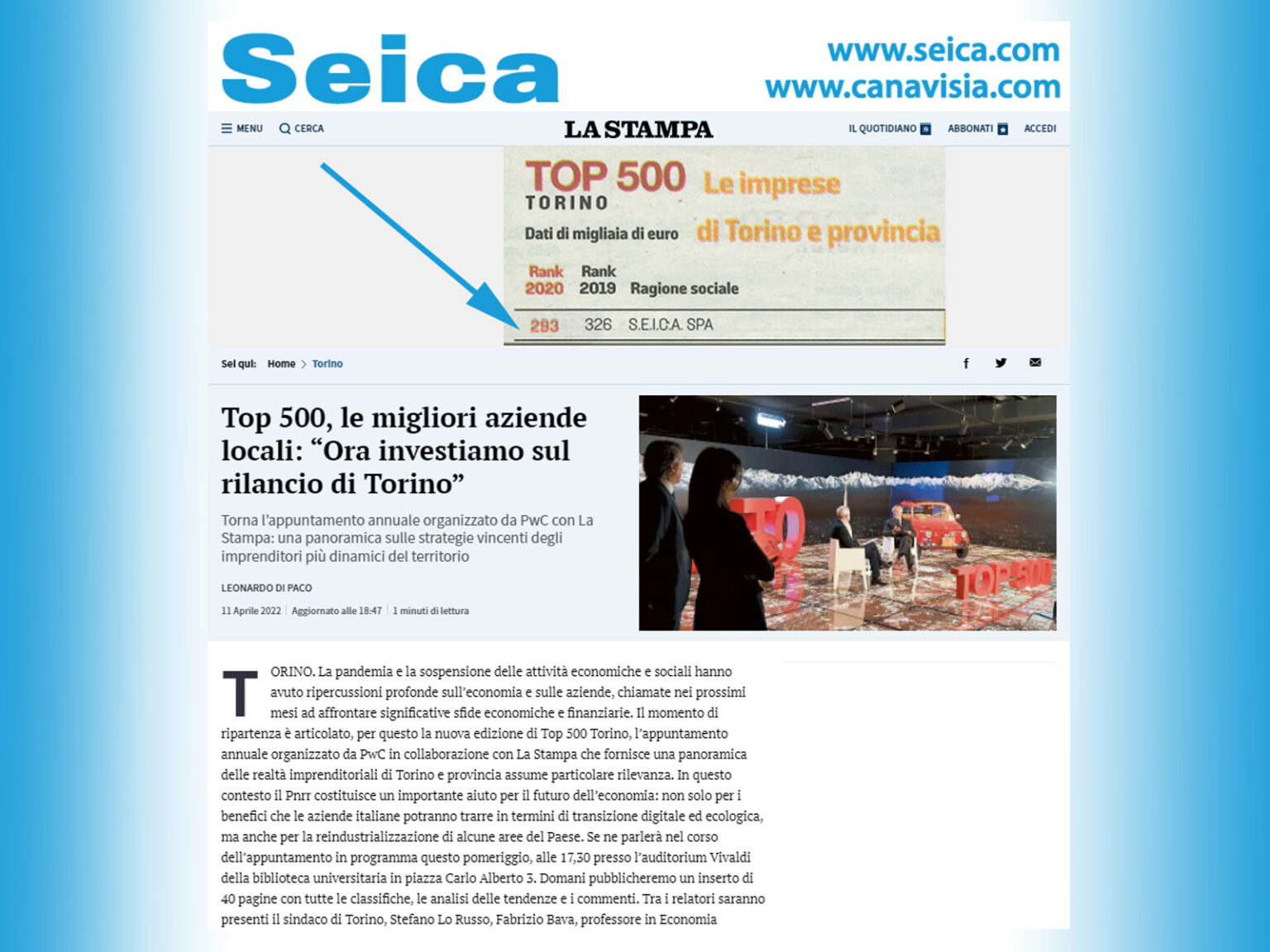 Seica進入前500名在意大利的報紙Stampa